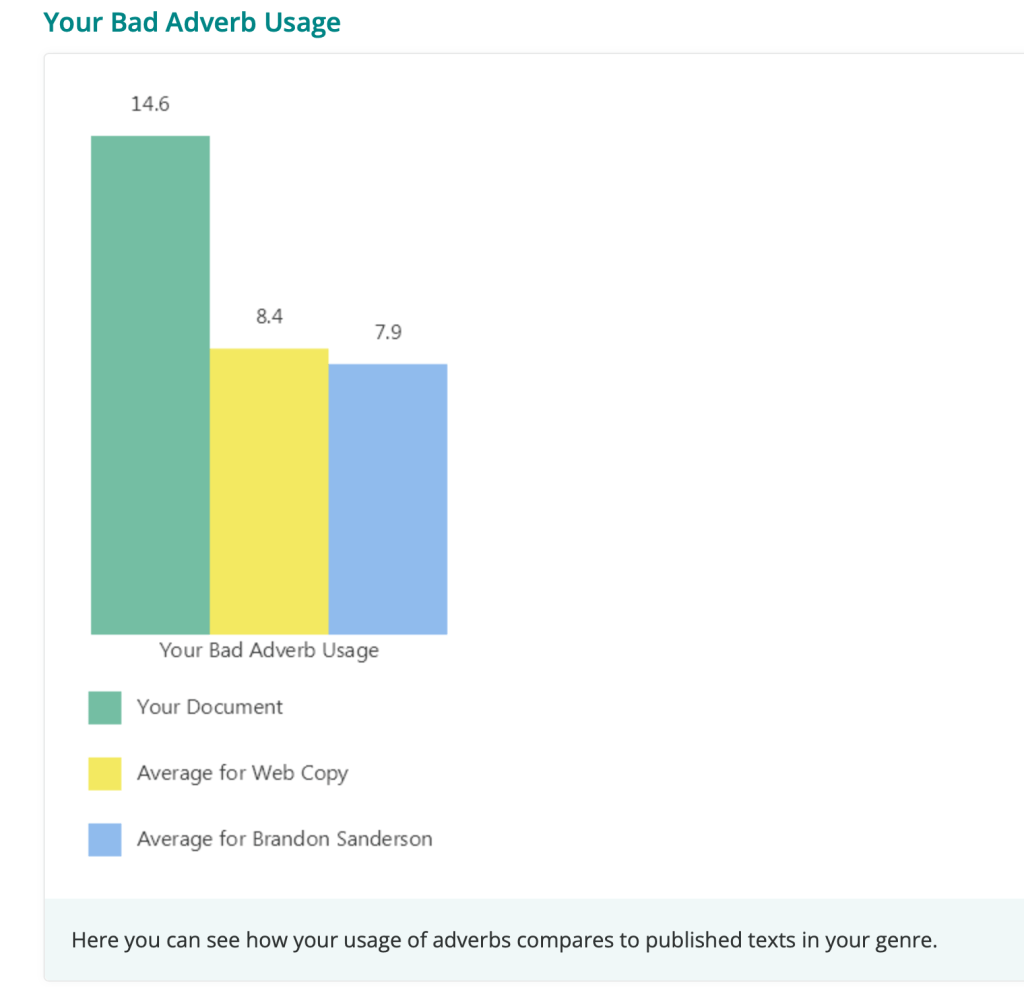 PWA’s reports are insane!! When you plug in your writing, PWA will generate an extremely detailed report that tells you everything about how you write. You can even have it compare your writing to that of famous authors!